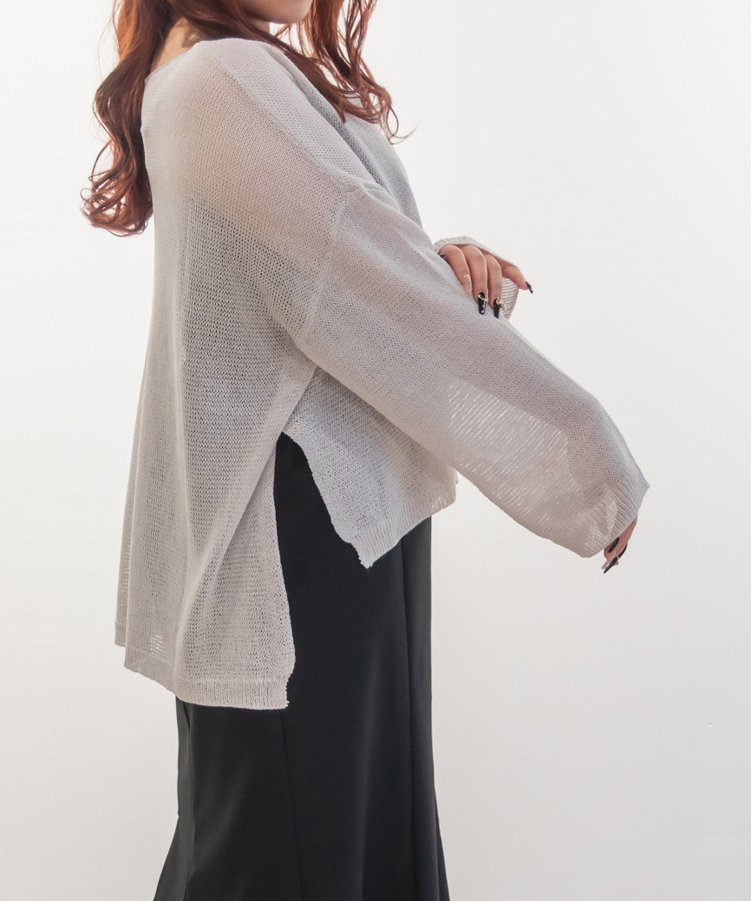 すっきりとしたストレートシルエットで、身体のラインを拾いすぎない一枚。