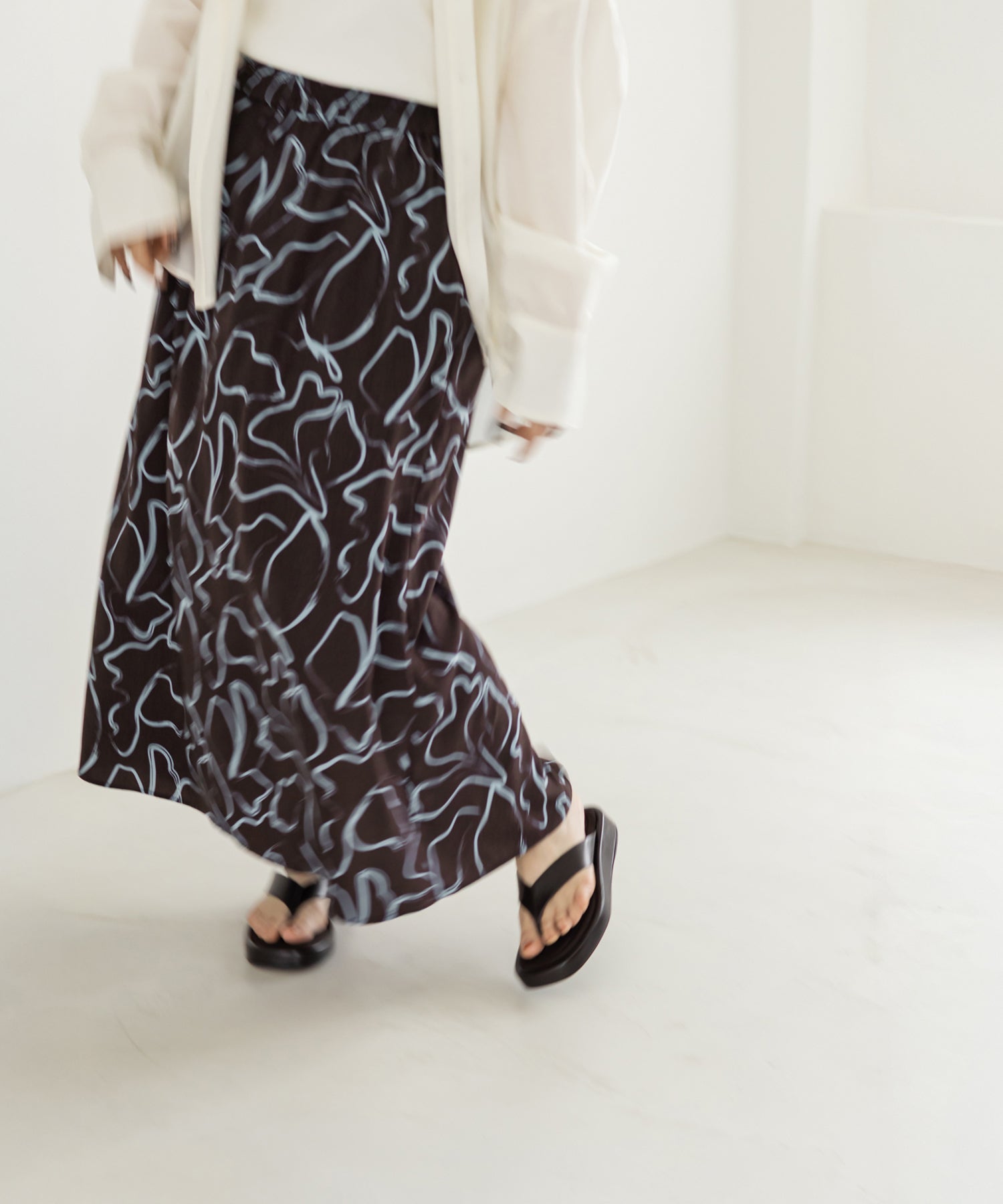 やわらかく揺れるシルエットに、さりげなく映えるニュアンス柄。 コーディネートに、ほどよいアクセントを添えてくれる1枚。