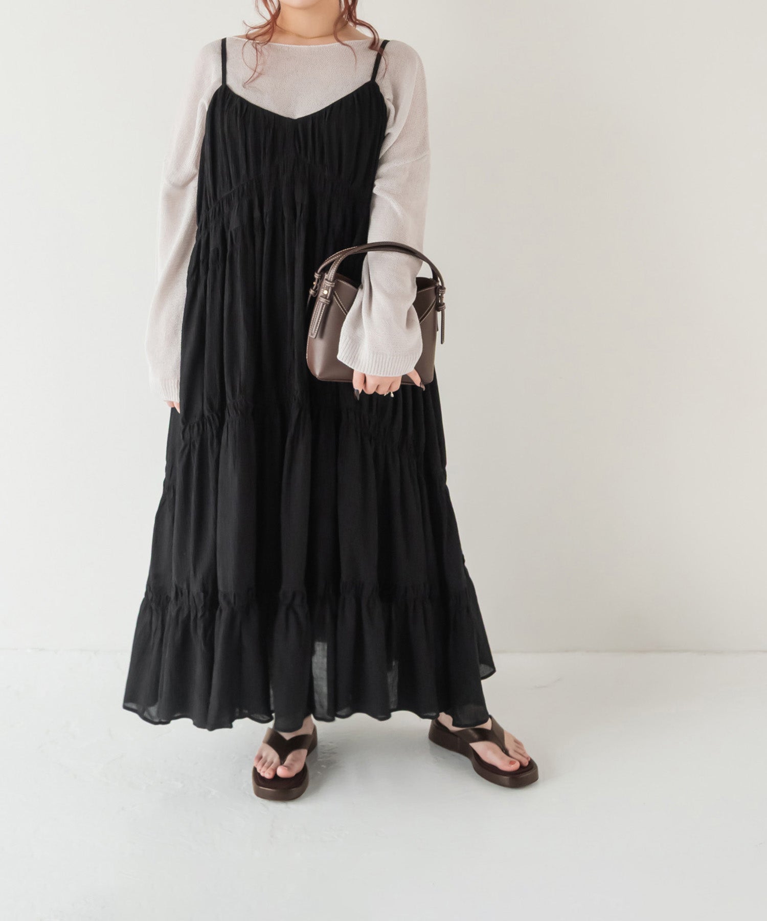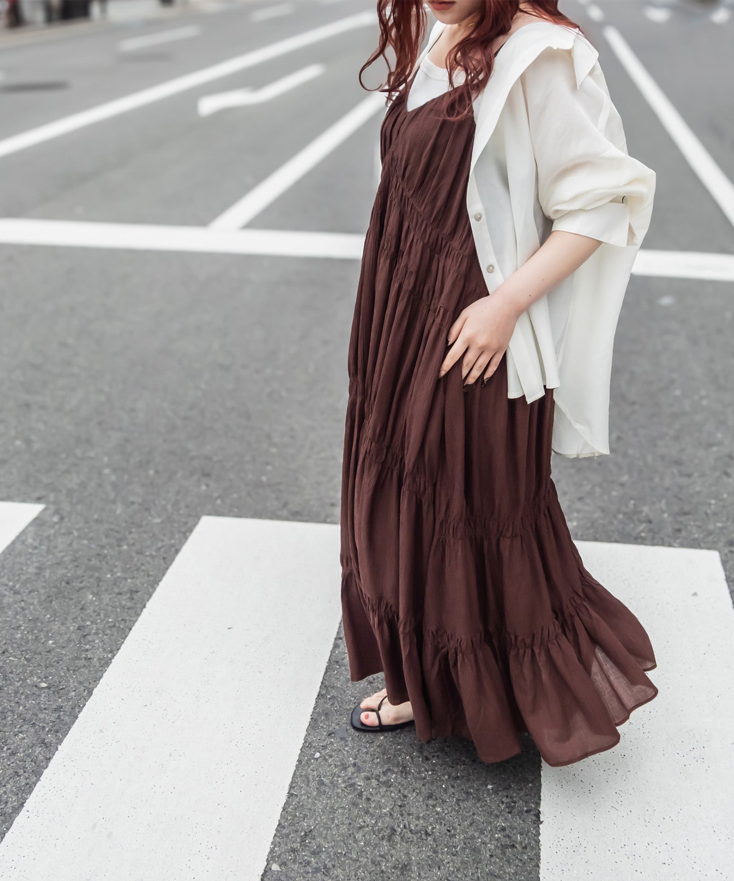 たっぷりとした分量感と、ギャザーが印象的なワンピース。